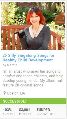 In May 2012, Marcie launched a kickstarter project to fund her dream of making a children’s album. After raising over $3000 from backers all around the globe, Marcie is hard at work and will release her album of 20 songs in Fall of 2012. Read all about the project’s history on the kickstarter website: