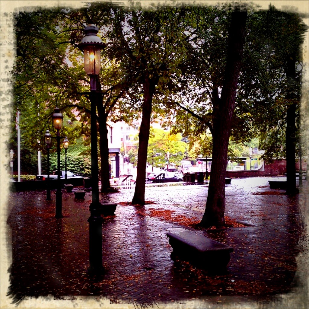 “The mall, a ‘tree shaded brick square,’ stands on a hill. This hill, originally Fort Hill, contained a fort built by the first European settlers in a spot ideal for  protection and inspection over the land and nearby water.”