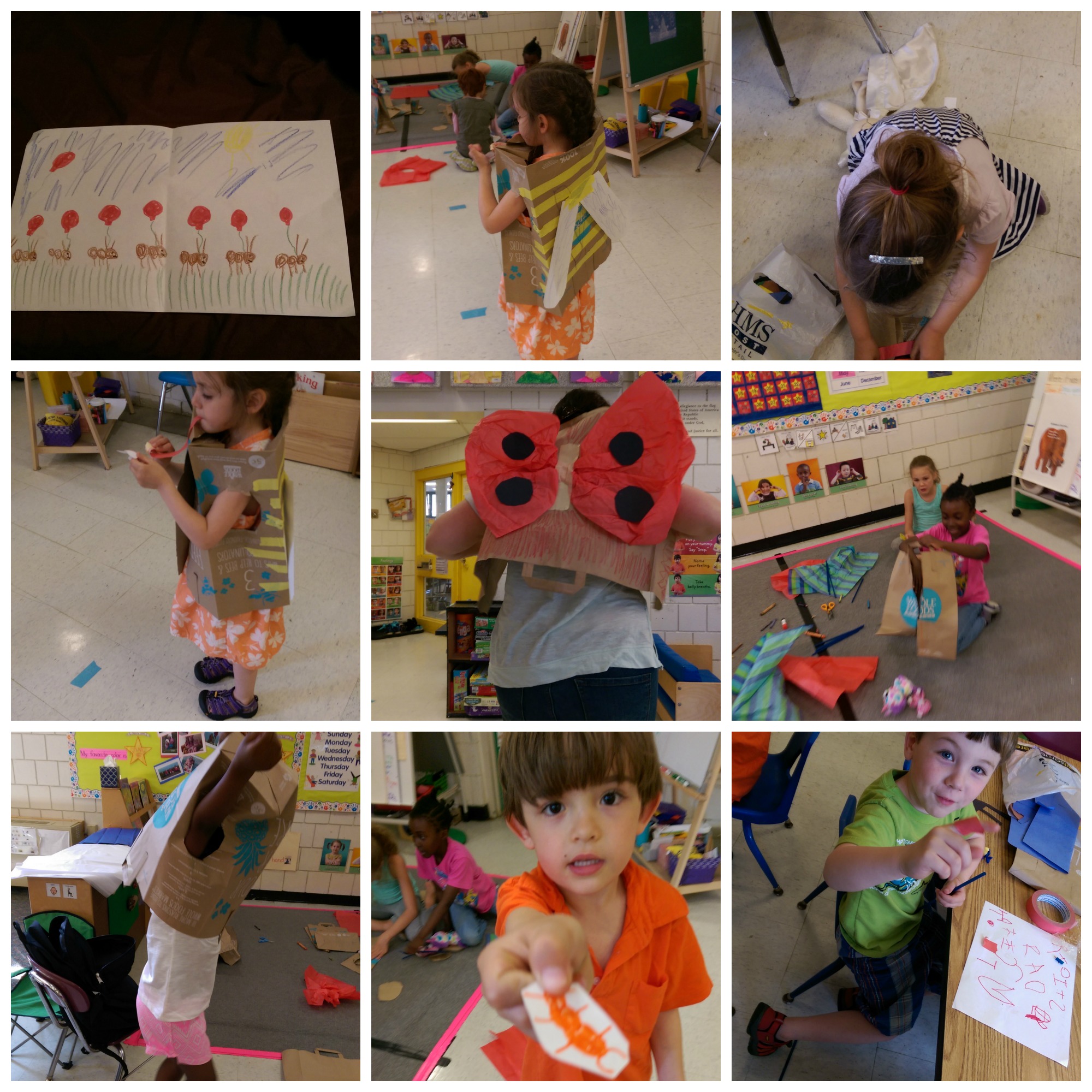 A glimpse of Marcie’s project based after school enrichment curriculum from this week (K-3). Learning about natural resources and making animals to gather around a waterhole, constructing homemade kites through trial and error, and turning ourselves into bugs after a rousing discussion about how ants cooperate to build bridges, tunnels, and rafts.