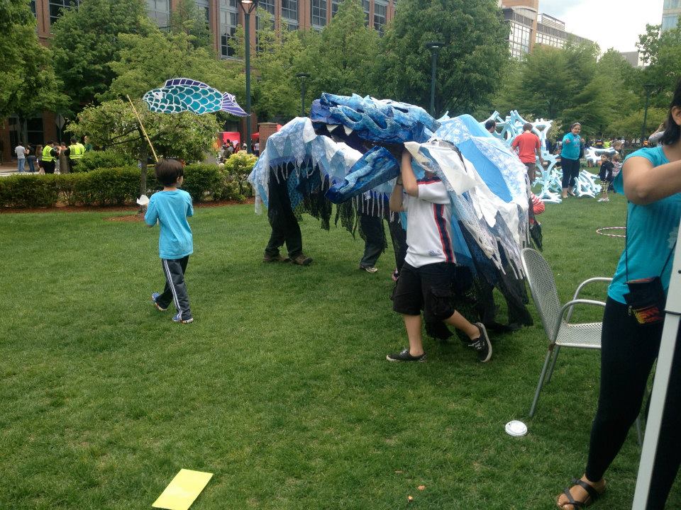 The Together Kids’ Inspiration Garden featured interactive activities blending music, art, and technology. Highlights included incredible installations from Sept Through May and NuVu Studios, alongside “…full kinetic, mental and creative absorption” from Terry the Inventor Mentor. Kids became giant puppets parading around the park with help from the Puppeteers’ Cooperative.  Sidewalks were decorated with themed chalk art facilitated by Urban Canvas, faces were painted by Jenny The Juggler, and hundreds of Key Chimes were created at the arts and crafts center.