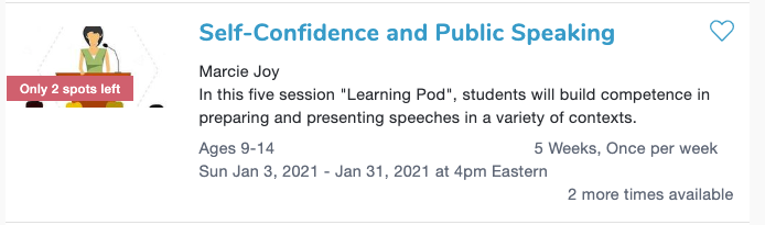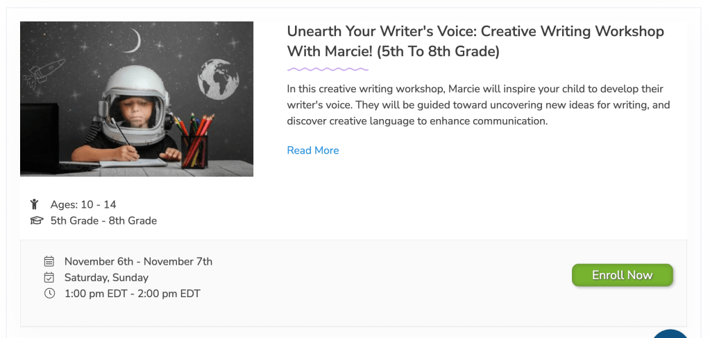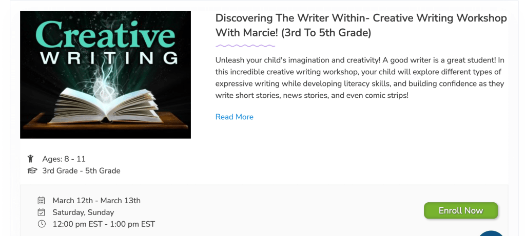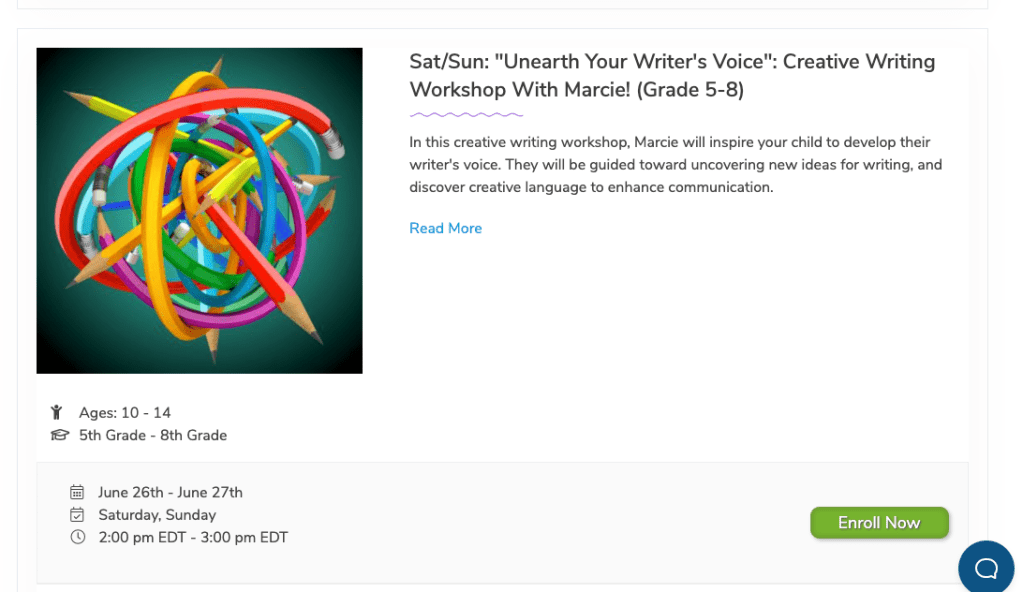 Join Marcie for other fun classes this summer! Theater, writing, book clubs, public speaking, and more!