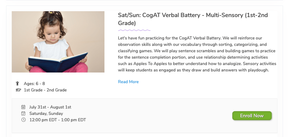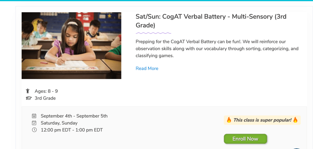 Marcie is teaching test prep for the CogAT Verbal Battery (Kindergarten – 5th Grade) via Testingmom.com.