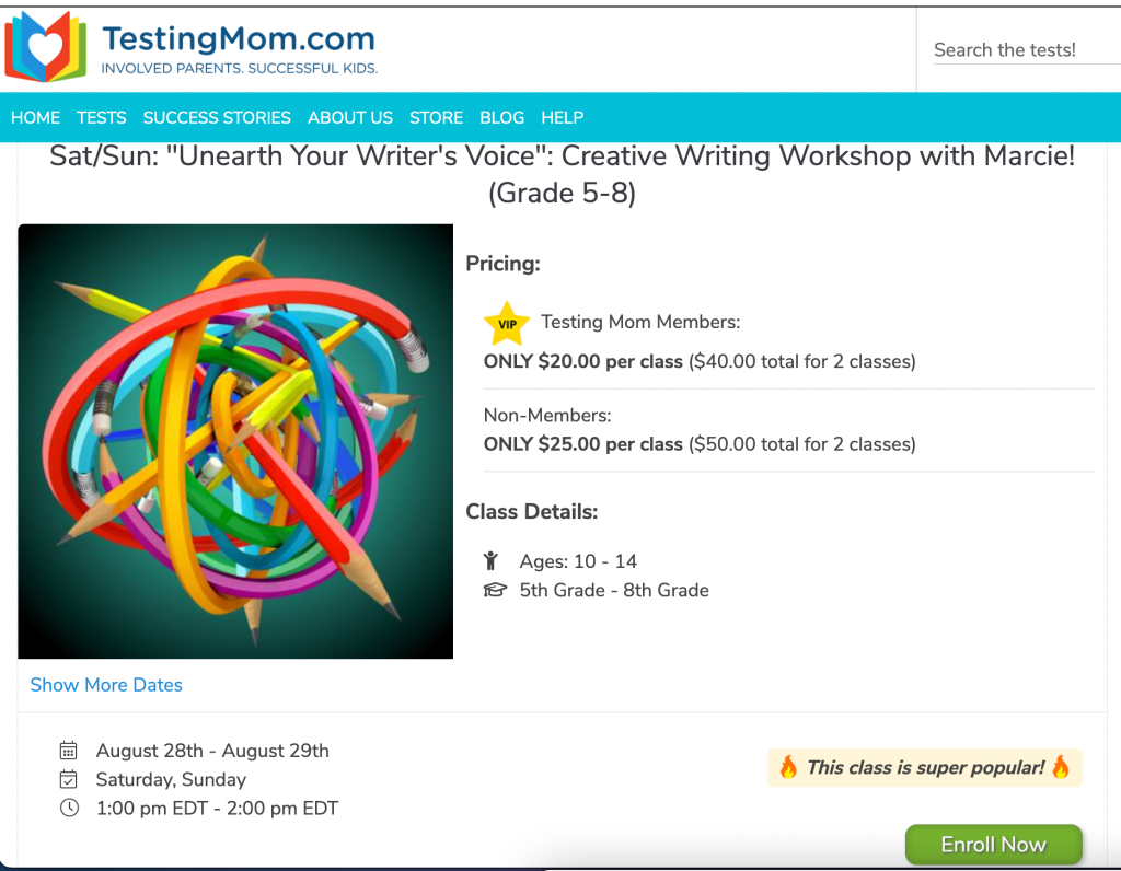 Join Marcie for some fun online classes this Spring! More info at: Testingmom.com