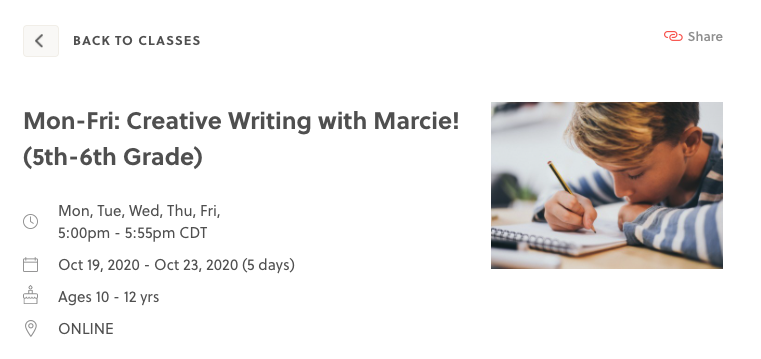 Join Marcie for other fun classes this summer! Theater, writing, book clubs, public speaking, and more!
