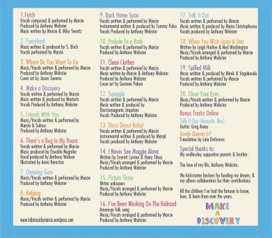 Make A Discovery (Songs for kids) is Marcie’s full length album geared for healthy child development. The album was initially funded through Kickstarter, and as thanks to fans all around the world, the complete album (20 songs) is offered free for all! Picture eBook included.